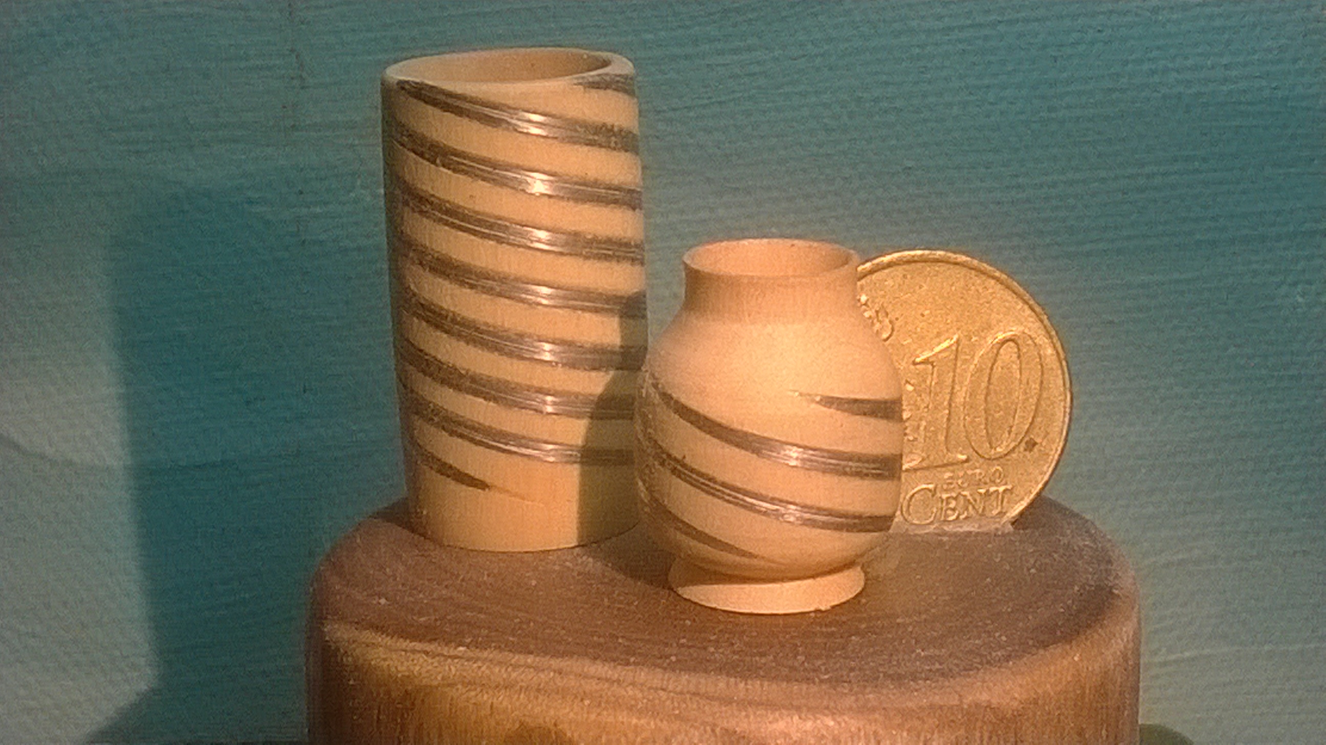 vijl en steeds fijner schuurpapier werden het mooie vaasjes met een leuke tekening.