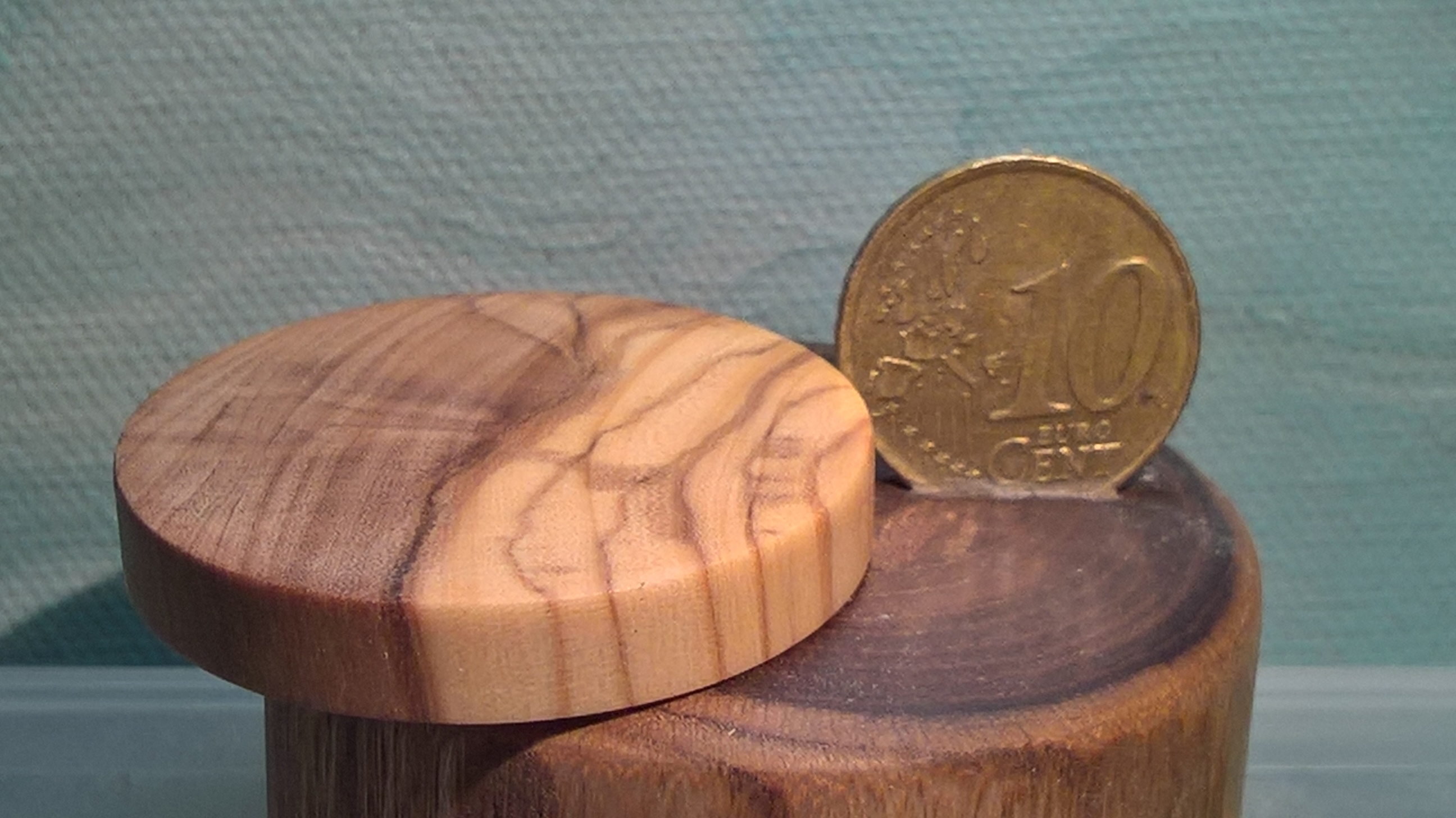 En het lukte, vaas van olijfhout.