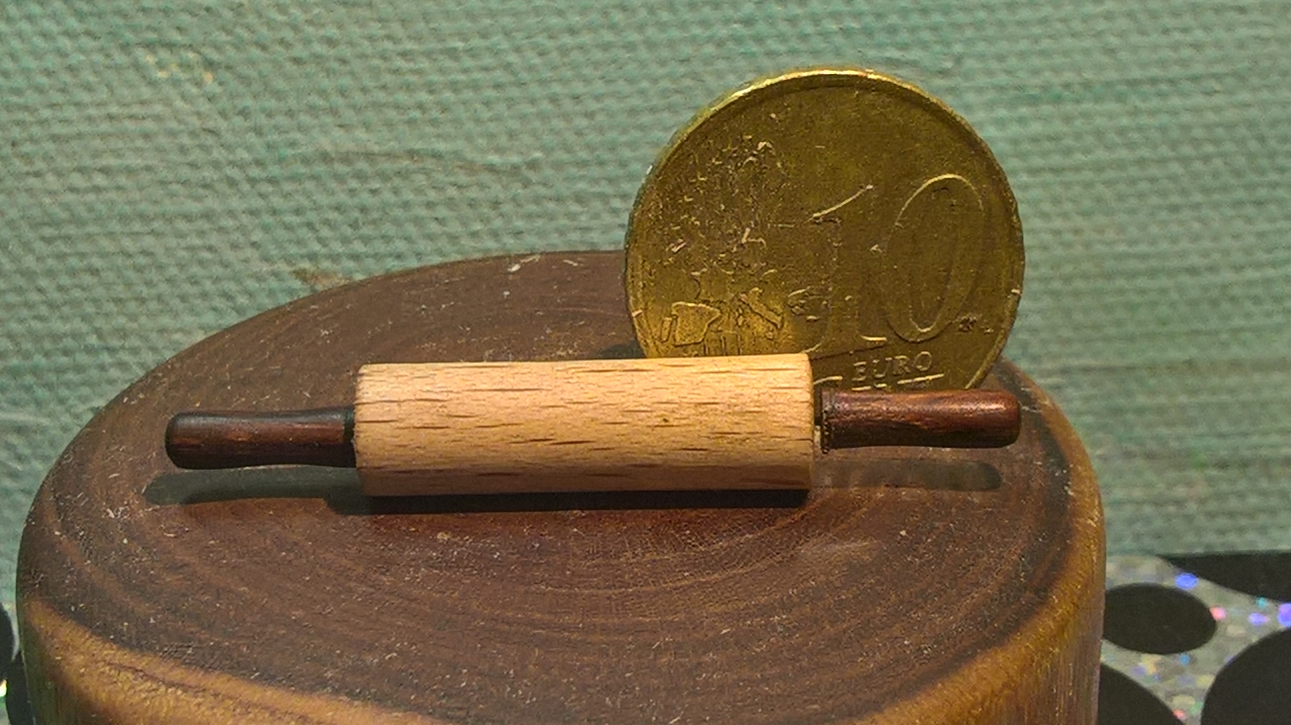 te draaienknapten er allemaal kleine stukjes kurk uit en zag het werk er rafelig uit. Op een laag